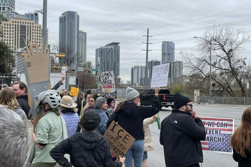 Hundreds of protesters gathered outside Austin City Hall on Tuesday — one year to the day after President Donald Trump’s inauguration for his second term — to denounce ICE deportations and demand that the city stop cooperating with federal immigration enforcement.