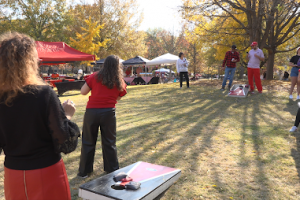 Georgia Bulldog fans playing cornhole at a tailgate on Georgia’s campus. TJ Krilowicz/Reporting Texas