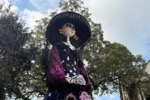 La Calavera Catrina, a symbol of Día de los Muertos, overlooks Muertos Fest at San Antonio’s Hemisfair on Friday, Oct. 24. Michael Karlis/Reporting Texas
