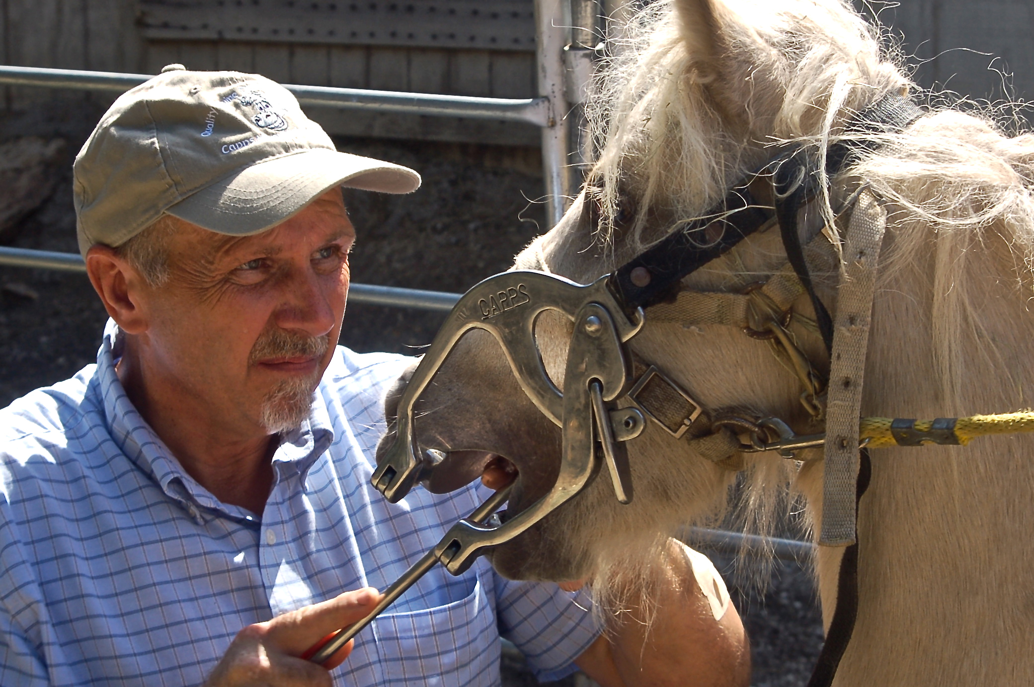 Such is the routine of a Texas horse dentist, and on a September morning at Goodsell Miniatures in New Braunfels, Mitz showed off the differences between his work and that of a human dentist. For one thing, his is dirtier — go figure. For another, most common procedures are performed outdoors or in a stable while the patient stands on all fours rather than reclining in a dental chair.